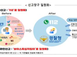 이제, 국민들은 보이스피싱 피해시, ‘112’에 신고하기만 하면 사건접수 뿐만 아니라 악성 앱 차단, 피해구제(지급정지) 등을 한 번에 처리 받을 수 있게 된다.