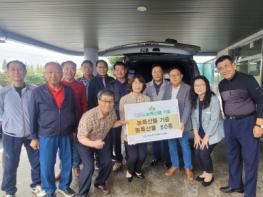 농촌지도자아산시연합회는 지난 26일 쌀 180kg 및 농특산물 50여 종을 아산시 두리사랑 주간보호센터에 기부했다.