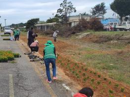 아산시 신창면이 지난 26일 마을 주민 60여 명과 함께 신창역 폐역사 주변에 메리골드 4,000본을 심어 꽃길을 조성했다.