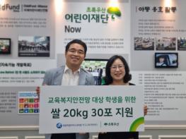 이번 추석에는 초록우산 세종지역본부가 교육복지 학생들의 풍요로운 명절을 위해 햅쌀 20kg 30포를 후원했다.