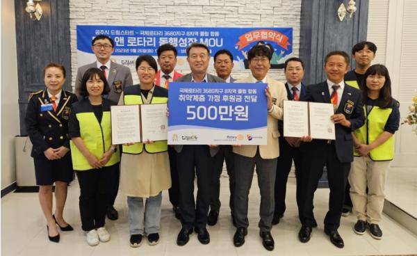 이번 협약을 통해 국제로타리 3680지구 8지역은 ‘드림 앤 로타리 동행 성장 프로그램’에 500만원의 후원금을 전달하기로 했다.