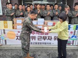 하동군통합방위협의회는 추석 명절을 앞둔 지난 26일 관내 군부대·예비군 지역대 등에서 근무하는 장병·사회복무요원 등 9개 기관 187명에게 돼지고기·배·포도·컵라면·초코파이·떡·상품권 등 1009만원 상당의 위문품을 전달하고 격려했다고 27일 밝혔다.