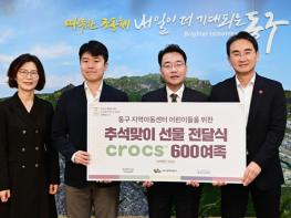 대구 신세계백화점은 지난 26일 동구청을 방문하여, 지역의 취약계층 아이들을 위해 3천만원 상당의 후원물품(크록스 신발)을 기탁했다.