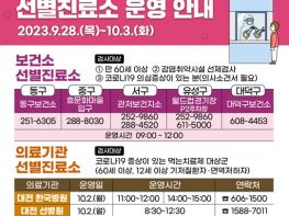 추석 연휴 기간 5개 구 보건소 선별진료소는 매일 오전 9시부터 12시까지 운영한다.