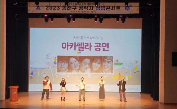 부산 동래구는 지난 19일 공정하고 희망찬 동래, 청렴으뜸 동래를 만들기 위해 4급이상 공직자, 신규임용자 및 승진자 등 294명을 대상으로 ‘청렴콘서트’를 실시했다고 밝혔다.