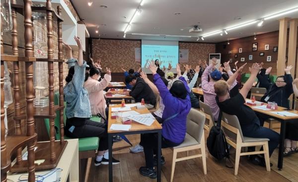 이번 교육은 박소현 강사를 초빙해 일자리 참여자들이 슬기로운 직장생활을 할 수 있도록 감정노동의 이해와 스트레스 관리 등의 내용으로 진행됐다.