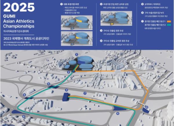 도시?환경 분야에서는 △녹색융합클러스터(반도체 폐기물 → 이차전지 원료로 변환, 490억원) △봉곡천 재해위험개선지구 정비사업(331억원) △지능형교통체계(ITS) 구축사업(34억원) △전선그린뉴딜 지중화사업(옥계동부초 통학로 주변, 30억원)을 통해 자원 재활용, 재해위험 예방 및 어린이들의 통학 시 불편함을 최소화한다. △2023 국제행사 개최도시 공공디자인 공모사업(19억원)을 통해 구미시민운동장 외부 경관 및 구미IC 진출입로 경관 개선으로 ‘2025년 아시아 육상경기대회’ 준비에 만전을 기하며, △고정밀 전자지도 구축 챌린지 사업(80억원)을 성공적으로 추진해 스마트시티 조성에 활용할 예정이다.