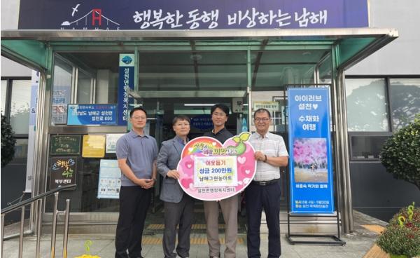 남해그린농마트는 26일 추석 명절을 앞두고 이웃들에게 온정을 나누기 위하여 설천면행정복지센터에 성금 200만원을 기탁했다.