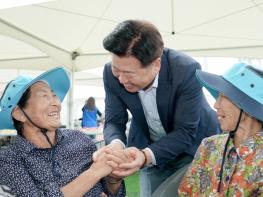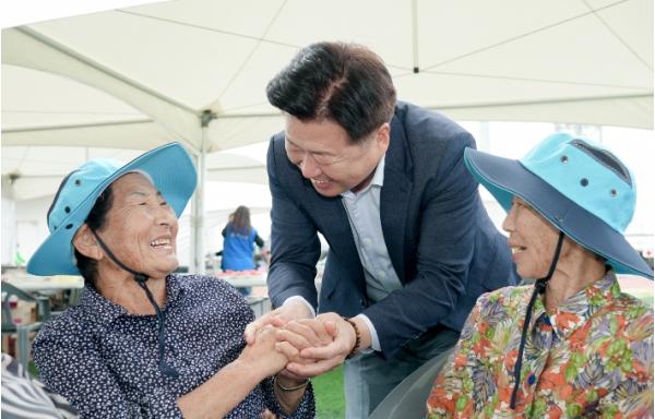 오영훈 지사는 이날 체육대회를 찾아 강정마을 주민들과 추석인사를 나누고, 행사 부스에서 점심식사를 함께 했다.