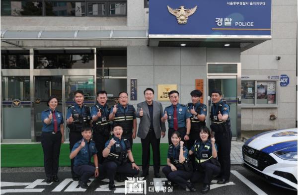 윤석열 대통령은 9월 30일 오후 중부경찰서 을지지구대와 중부소방서를 방문해, 명절에도 쉬지 못하고 근무하는 직원들을 격려했다.