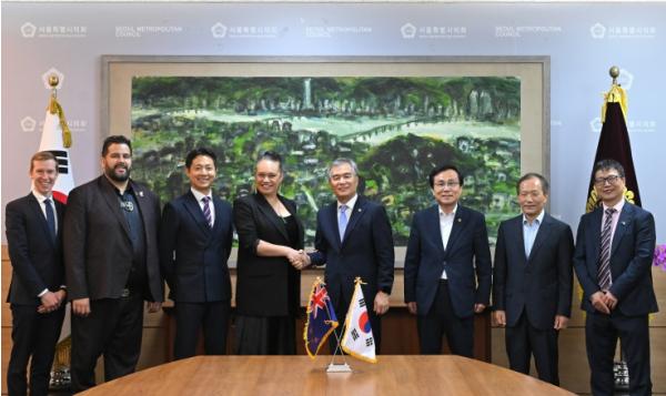 김현기 의장은 27일, 상호결연도시인 웰링턴시의회 대표단을 접견하고 양 의회 간 교류협력 강화 방안을 논의했다.