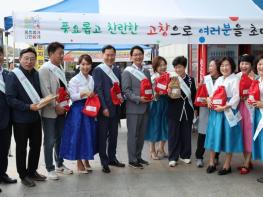 고창군이 추석연휴 첫날인 28일 고창고인돌휴게소에서 고향을 찾은 귀성객을 대상으로 ‘제50회 모양성제’와 ‘2023 세계유산도시 고창 방문의 해’ 홍보에 나섰다.