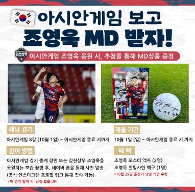 김천상무프로축구단이 아시안게임에 출전 중인 조영욱 응원 이벤트를 실시한다.