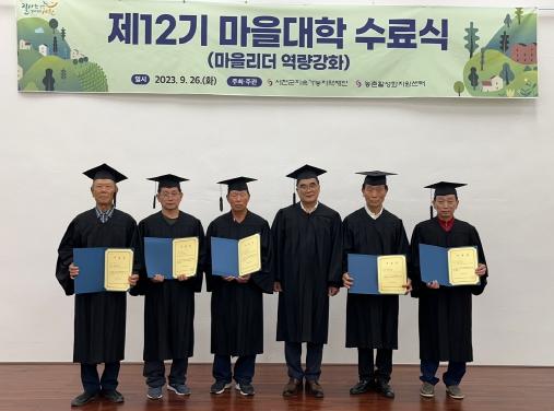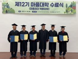 9월 26일 시초면 농업인 복지회관에서 5개소(서천읍 화성2리, 마서면 덕암리, 문산면 금복2리, 문장2리, 종천면 장구2리) 마을리더 및 주민 50명이 참석한 가운데“제12기 마을대학 수료식”을 진행했다.