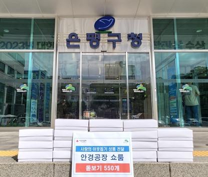 은평구는 지난달 21일 안경공장 쇼룸으로부터 사랑의 이웃돕기 성품을 전달받았다고 밝혔다.