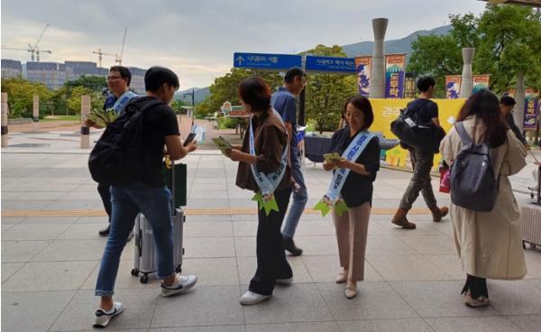 이날 캠페인은 귀성객들에게 고향사랑기부제를 설명하고 리플릿을 나눠주며 고향사랑기부제에 대한 이해와 관심을 유도했다.