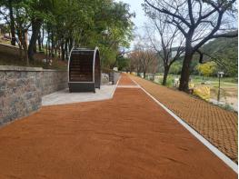 황톳길 곳곳엔 그늘막, 그네 의자, 등의자, 4인용 야외 탁자 등의 휴게시설을 설치했다.