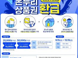 환급액은 당일 국내산 수산물 구매금액의 최대 40%로, 구매액이 2만 5천 원 이상일 경우 1만 원 상당, 5만 원 이상일 경우 2만 원 상당의 온누리상품권이 각각 지급된다. 일주일 동안 1인당 최대 2만 원까지 환급받을 수 있다.