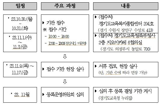 등록을 희망하는 기관은 30일부터 31일까지 경기도교육복지종합센터에 직접 방문해 신청하거나 다음 달 1일부터 3일까지 북부청사 접수처를 방문하면 된다.