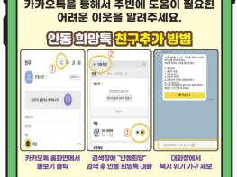 안동시는 위기가구 발굴과 지원 등 빈틈없는 복지안전망 구축을 위해 카카오톡 채널 ‘안동희망톡’을 운영한다.