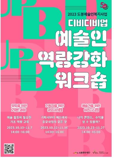도봉구 도봉문화재단이 10월부터 11월까지 도봉에서 거주 또는 활동 이력이 있는 문화기획자, 예술인을 대상으로 예술인 역량강화 교육과정 ‘디비디비업(業)’을 운영한다.