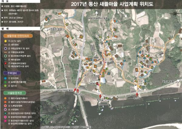 우수지구로 선정된 광시면 동산마을은 ‘주민의 안전과 행복한 생활을 담은 건강한 삶의 터전 조성’을 목표로 위험사면 옹벽 설치, 세천 정비, 노후 집수리, 슬레이트 지붕개량 등 마을 인프라 및 주거 환경을 개선했다.