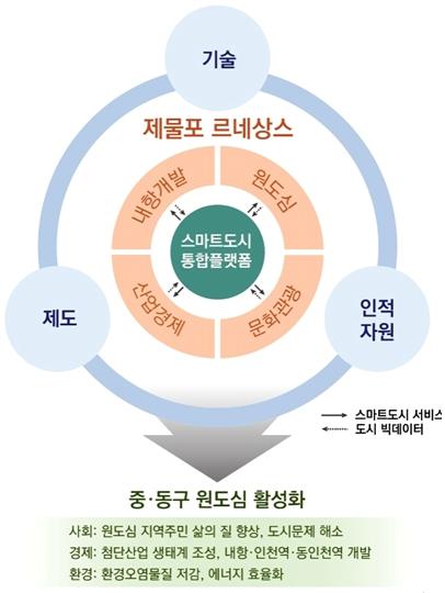이에 이 연구는 중·동구 원도심 활성화를 위해 추진되는 제물포 르네상스 프로젝트와 통합·연계되는 원도심 스마트도시 조성 방안을 다음과 같이 제안했다.