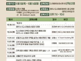 교육은 오는 18일부터 12월 6일까지 기간 중 매주 화요일 또는 수요일 오후 7~10시에 총 9회 과정으로 영주시 도시재생지원센터에서 진행될 예정이다.