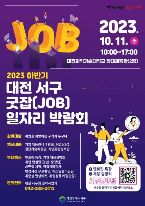 대전 서구는 오는 11일 대전과학기술대학교 창대체육관에서 하반기 굿잡 일자리박람회를 개최한다.