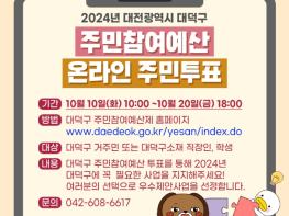 대전 대덕구는 10일부터 20일까지 2024년 주민참여예산 사업선정을 위한 온라인 주민투표를 진행한다.