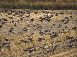 천수만에 도래한 기러기류는 멸종위기야생생물 II급 큰기러기(영명: Bean Goose)를 비롯해 쇠기러기(영명: White-fronted Goose)가 주를 이루고 있으며, 이른 수확이 끝난 농경지를 중심으로 먹이활동을 하고 있다.