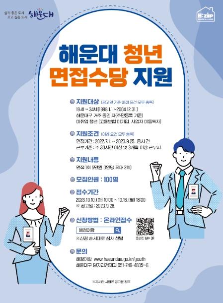 해운대구는 청년들의 구직활동을 돕기 위해 면접수당을 지원한다.