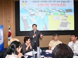 수원시가 5일 시청 중회의실에서 ‘시민공감! 지역맞춤! 인권정책 과제 발굴을 위한 수원시민 원탁토론회’를 열고, 시민 공감형 인권 정책 추진 방안을 모색했다.