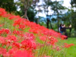 산청군 산엔청공원 진홍빛 꽃무릇 만개