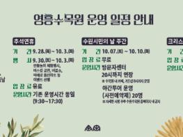 수원수목원(일월·영흥)이 수원시민의 날(10월 10일)을 맞아 영흥수목원은 7~10일, 일월수목원은 8~10일 무료로 개방한다.