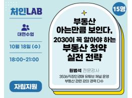 온라인 강의는 6일, 대면 강의는 처인 청년LAB에서 18일 이뤄진다. 교육에서는 주거 관련 전문가가 부동산 관련 기초 상식, 청약, 기초 경매 등에 대해 3시간 동안 안내한다.