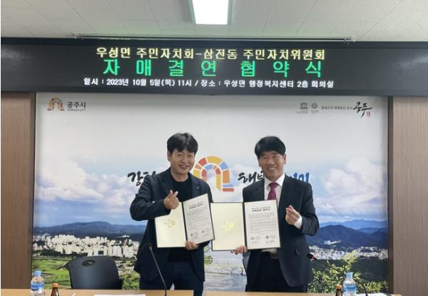 공주시 우성면 주민자치회는 지난 5일 우성면 행정복지센터에서 서울시 송파구 삼전동 주민자치위원회와 자매결연을 체결했다고 밝혔다.