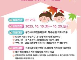 지원 대상은 부모와 자녀가 용인특례시에 주소를 등록한 85가구로 ▲동일 가구 내 18세 이하 자녀 2인 이상 ▲가구 소득이 기준 중위소득 180% 이하(4인가구 972만1735원) ▲금융기관에서 전세자금 대출을 받은 주거용 주택 거주자다.