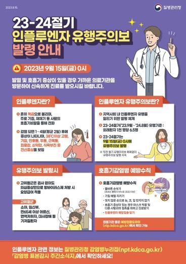 인플루엔자 유행주의보는 지역 내 인플루엔자 유행을 알리기 위한 발령체계로 매년 9월부터 이듬해 8월까지 당해 절기 유행기준을 초과할 때 전문가 자문을 거쳐 즉시 발령된다.