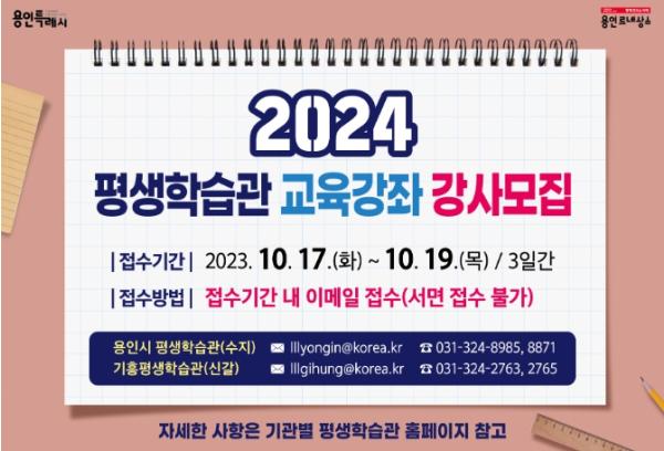 용인시평생학습관이 오는 23일부터 26일까지 ‘제2차 수시교육’ 수강생을 선착순 모집한다고 10일 밝혔다.