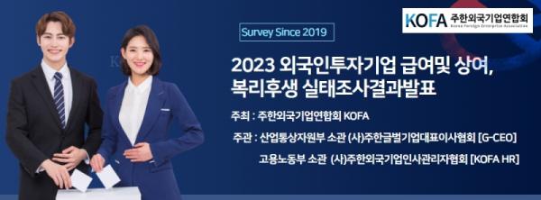 주한외국기업연합회 KOFA는 1999년도에 설립된 주한외국계기업의 연합체로서 산업통상자원부소관 (사)주한글로벌기업대표이사협회 [G-CEO] 와 고용노동부 소관(사)주한외국기업인사관리자협회 [KOFA HR]등의 법인회원사와 외국계기업에 종사하는 직장인들이 개인자격으로 600사가 가입 되어있고 매년 한국에 진출한 외국계기업의 급여 및 상여와 복리후생 시스템을 조사하고 매달 외국계기업들의 인사관리 시스템 (HR System) 을 서베이하여 참여기업 담당자들에게 무료로 공유하고있는 Global HR 학술.연구 및 HR 시장조사 전문기관으로 거듭나고있다. 급여 및 상여, 복리후생 실태조사는 올해로 5번째 조사를 했다.