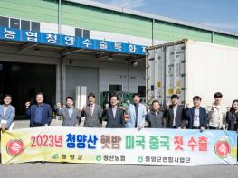이날 수출 기념식은 장평면에 있는 정산농협 경제종합센터에서 열렸으며 김돈곤 군수, 황인국 정산농협 조합장 등이 참석했다.