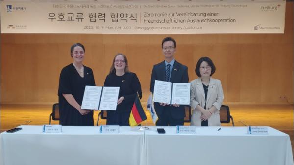 수원시도서관은 9일 독일 프라이부르크시립도서관과 우호교류 협력 협약을 체결했다.