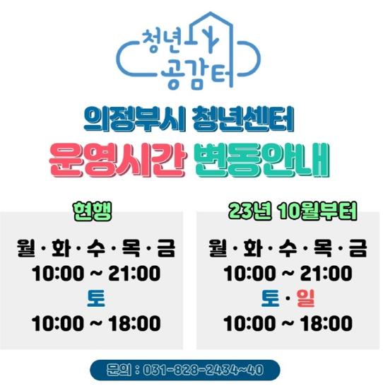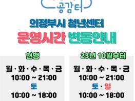 의정부시는 청년센터 청년공감터(이하 청년센터)를 10월 8일부터 일요일에도 운영한다.