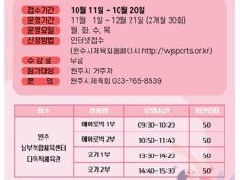 10월 20일까지 원주시체육회 홈페이지에서 온라인으로 신청할 수 있다.