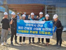 합동점검은 가능동에 위치한 근린생활시설 신축공사 현장에서 ▲안전모, 안전화 등 개인안전장구 착용 여부 ▲산업재해 예방조치 위반 사항 ▲이동식비계 안전난간대 미설치 등을 지적하고 개선을 요청했다.