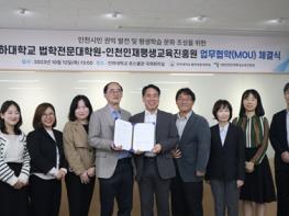 인천인재평생교육진흥원이 12일, 인하대 법학전문대학원과 업무협약을 체결했다고 밝혔다.