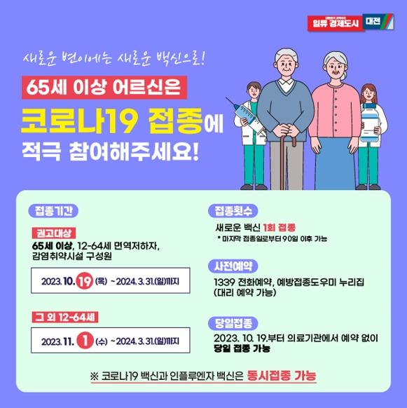 대전시는 10월 19일부터 65세 이상, 12세~64세 면역저하자, 감염취약시설 구성원 등 고위험군을 시작으로 코로나19 예방접종을 실시한다.