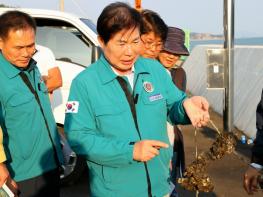 공영민 고흥군수는 14일 오후 고흥의 굴 주요 생산지인 포두면 취도마을을 방문해 고수온 피해 굴 양식장을 점검하고 시름에 빠진 어업인들을 격려하고 애로사항을 청취했다.