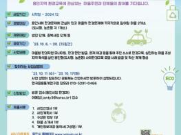 자세한 사항은 용인시 홈페이지와 ‘환경교육도시 용인‘ 블로그에서 확인할 수 있다. 문의나 찾아가는 사업설명회 신청(17일까지)은 용인시청 환경과 환경교육팀으로 하면 된다.